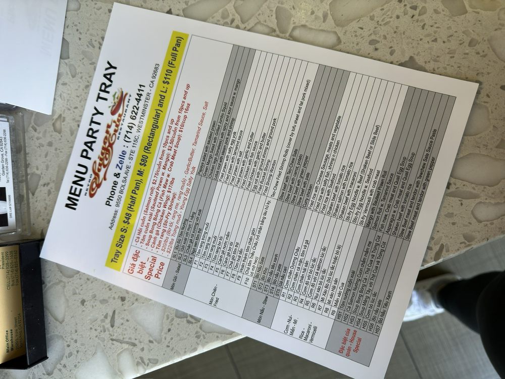 “ This little gem has a ton off things in the fridge and hot foods to go. They have a catering menu as well. No frills place prefers cash but does take card but you will be taxed. Zelle will save you some money as well. I came here to try the crispy sticky rice since Ive never tried this anywhere before. Another item I wanted to try was the grilled prawn spring rolls. I have seen these anywhere before. This place closes around 6pm and I got in within the last hour. The crispy sticky rice was sold out. I grabbed a few items to try. TBH they were underwhelm so I didnt eat it more than a bite. I was disappointed walking in they had everything wrapped and premade. I was expecting fresh rolls but I did also come at the end of the day. Did not have high hopes. BUT when unwrapped it and ate it, it was so good. Instead of carrot, daikon and such.. it has mango cut up line like papaya salad the crispy eggroll wrap for the crunch, cucumber and the grilled shrimp. The fish sauce is different too. Its sweeter but very flavorful. The combination of the two so fresh, so refreshing. I will come back over and over for this. Ive told people and everyone who has tried it has been a fan. My friend bought a tray of 25 to bring back to her family. Ate four herself before delivery ahhah If youre ordering over 10 theyre discounted. ”